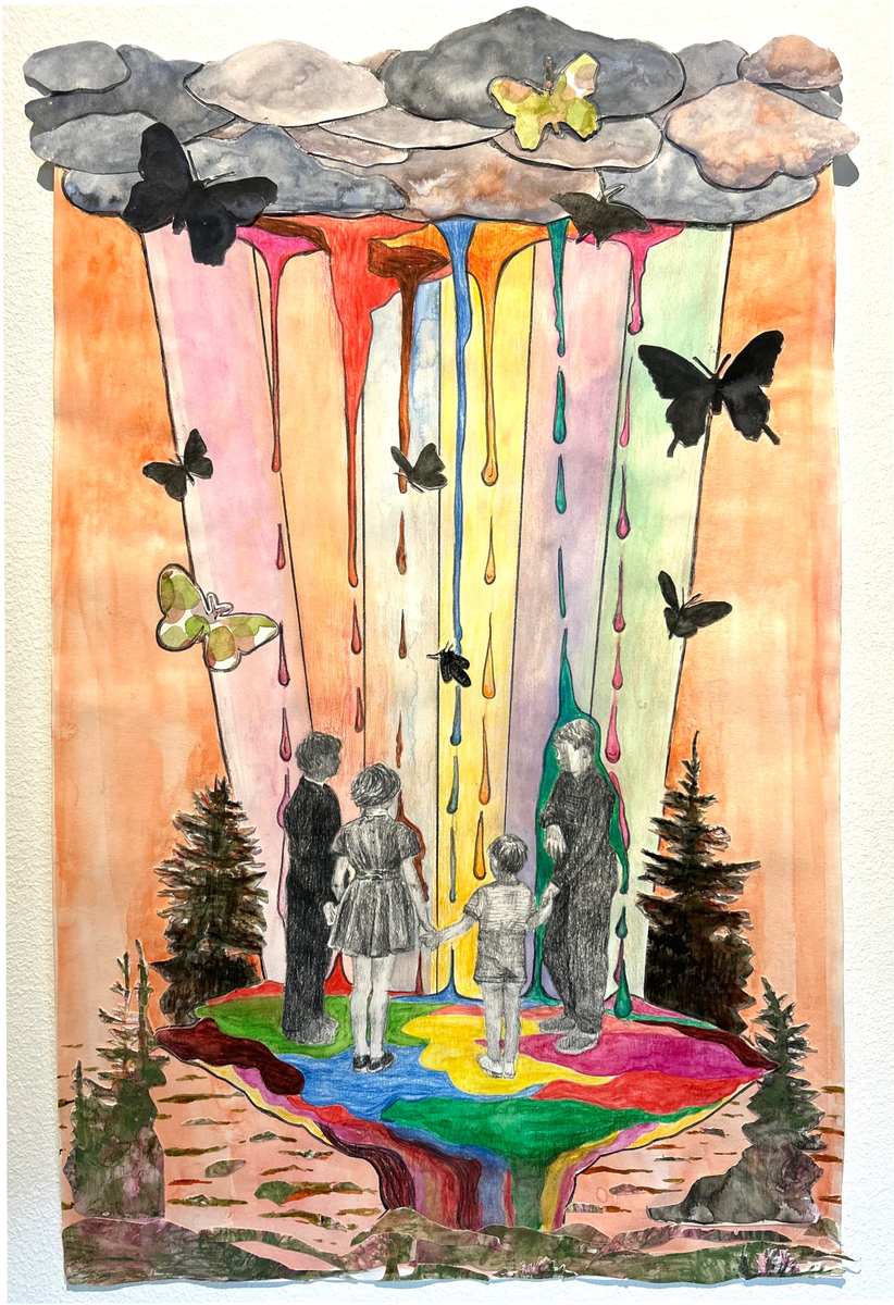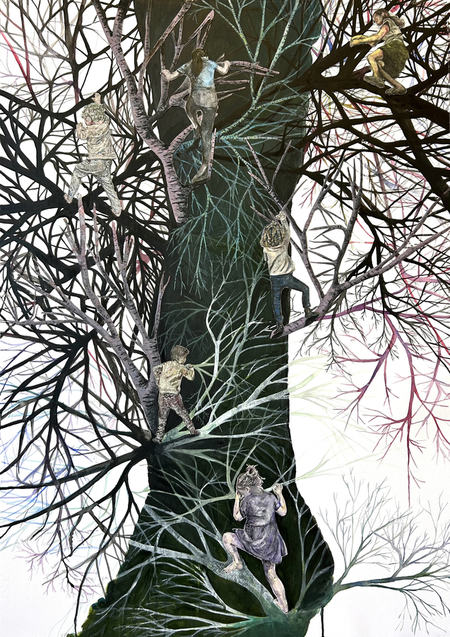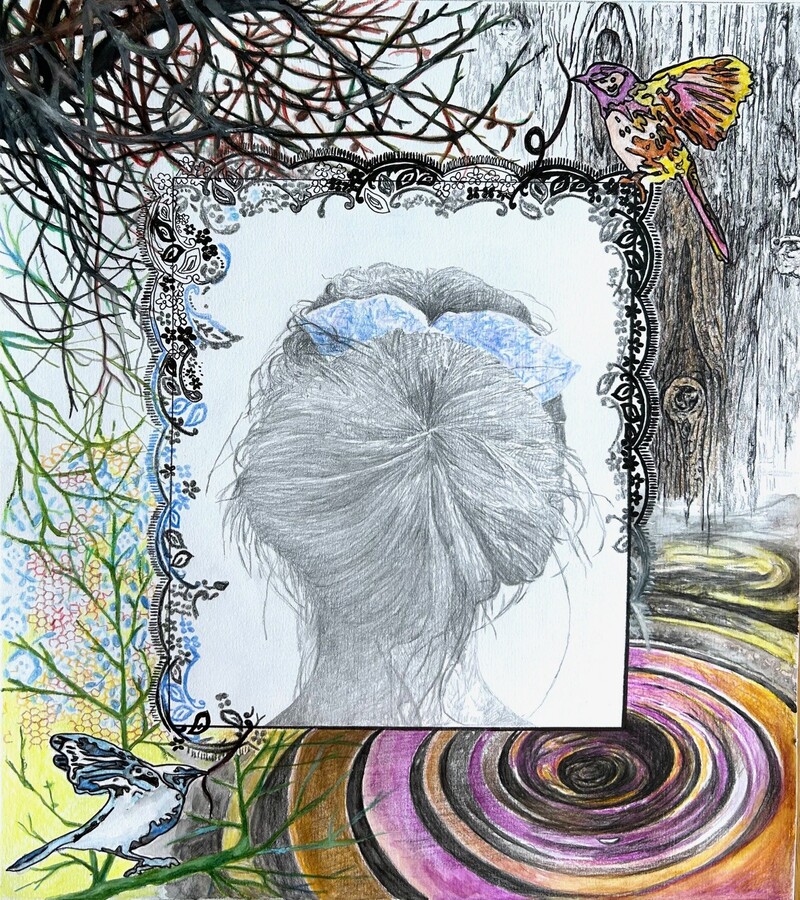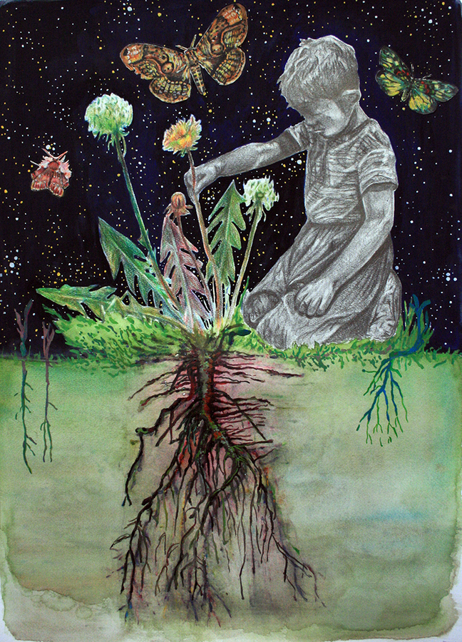 Fantasi och verklighet i kombination är det grundläggande temat i mina teckningar. De är skapade som ett slags tecknade kollage. Svartvita bilder och bilder i färg från skilda perspektiv och miljöer blandas samman genom blyerts, tusch och färgpennor.
